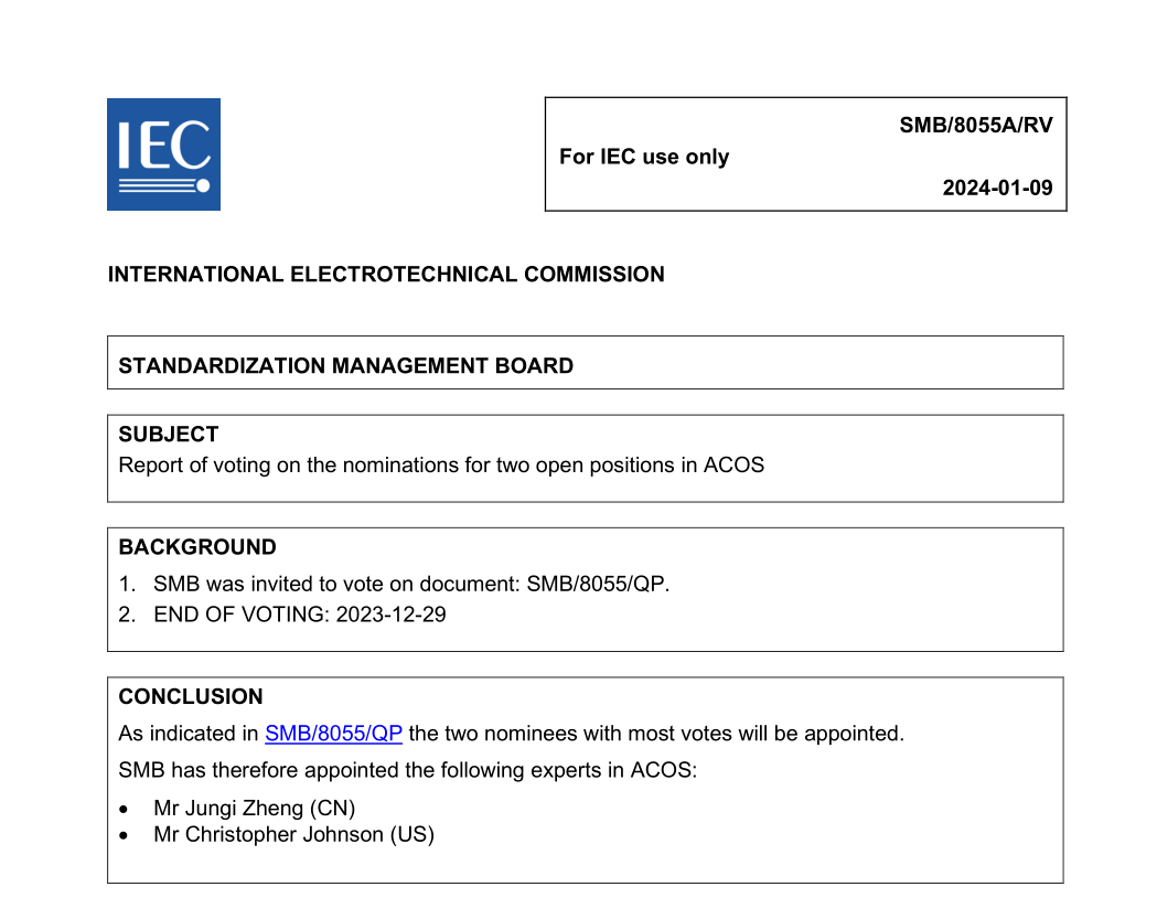 牵头制定IEC 63281-3-2:2024国际标准发布,并获2024国际电工标准化1906奖。