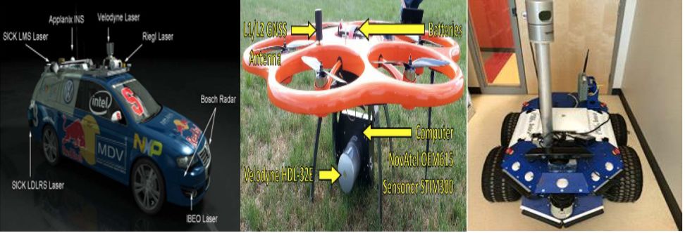 通过调研及查找相关文献,目前激光雷达和全景相机组成系统主要应用于SLAM、地图构建、定位、导航、路径规划等研究领域。该系统可以实现无人驾驶三维环境识别重建、机器人leyu.乐鱼室内外高精度地图构建和跟踪导航,能够将外界环境颜色信息和深度信息集于一体,可大大缩小识别误差和信息错误丢失率,如下分别为装有该系统的无人车载实物图及其实现的地图构建效果图。